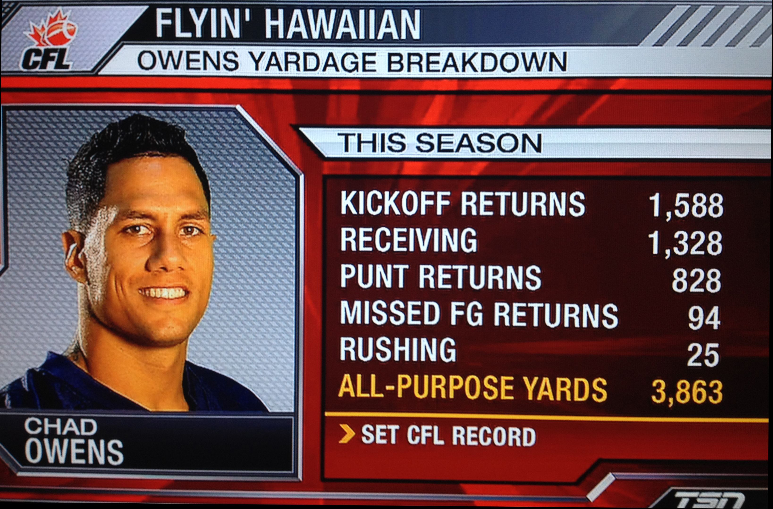 CHAD OWENS – PERCENTAGE OF ARGOS YARDAGE